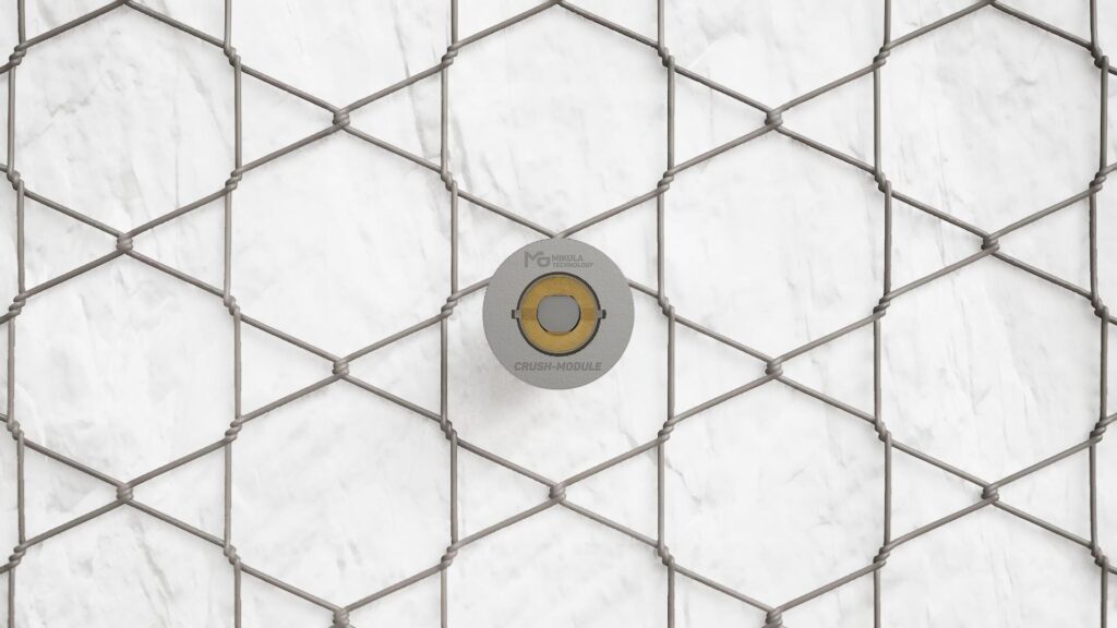 An independent, replaceable crush-module that adds major dynamic capacity energy, displacement, and load control to any rockbolt or cable bolt.